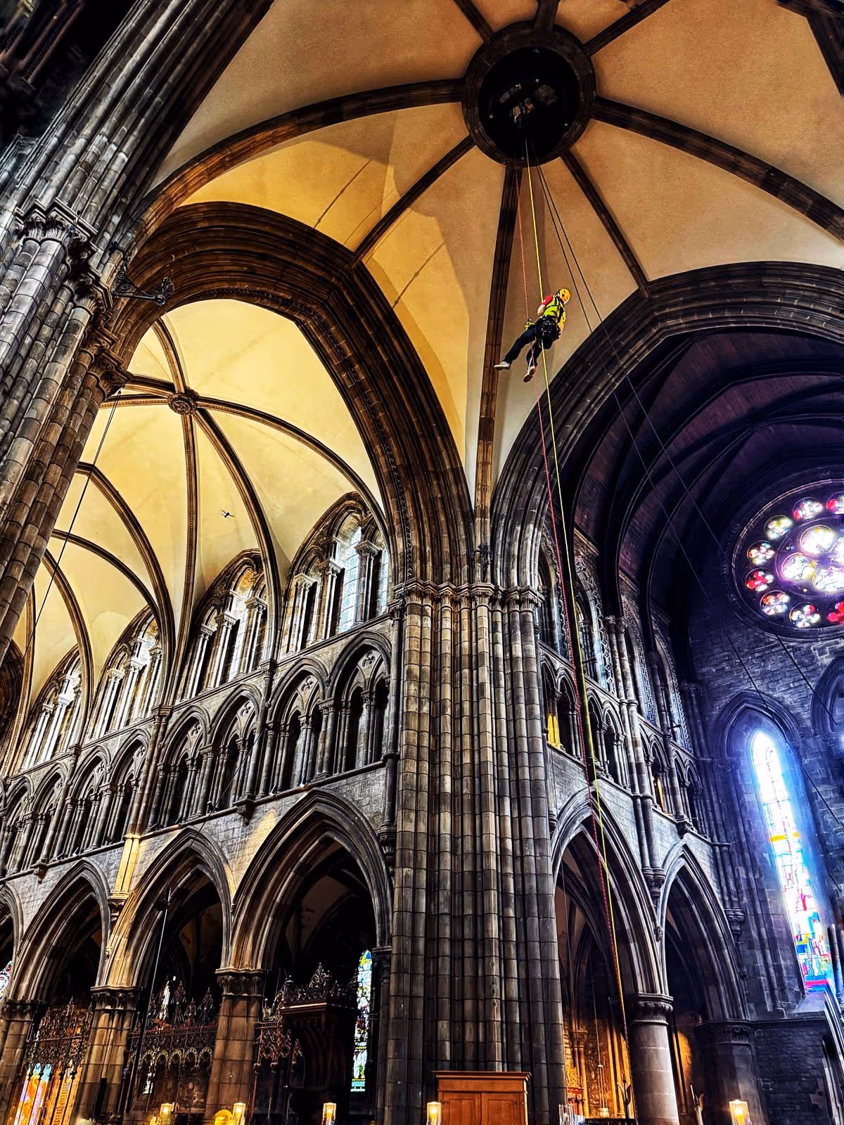 That’s right-this service is entirely complimentary. It’s our way of giving back, helping maintain beautiful buildings and natural spaces while also showcasing what rope access can achieve and getting fabulous footage at great locations.